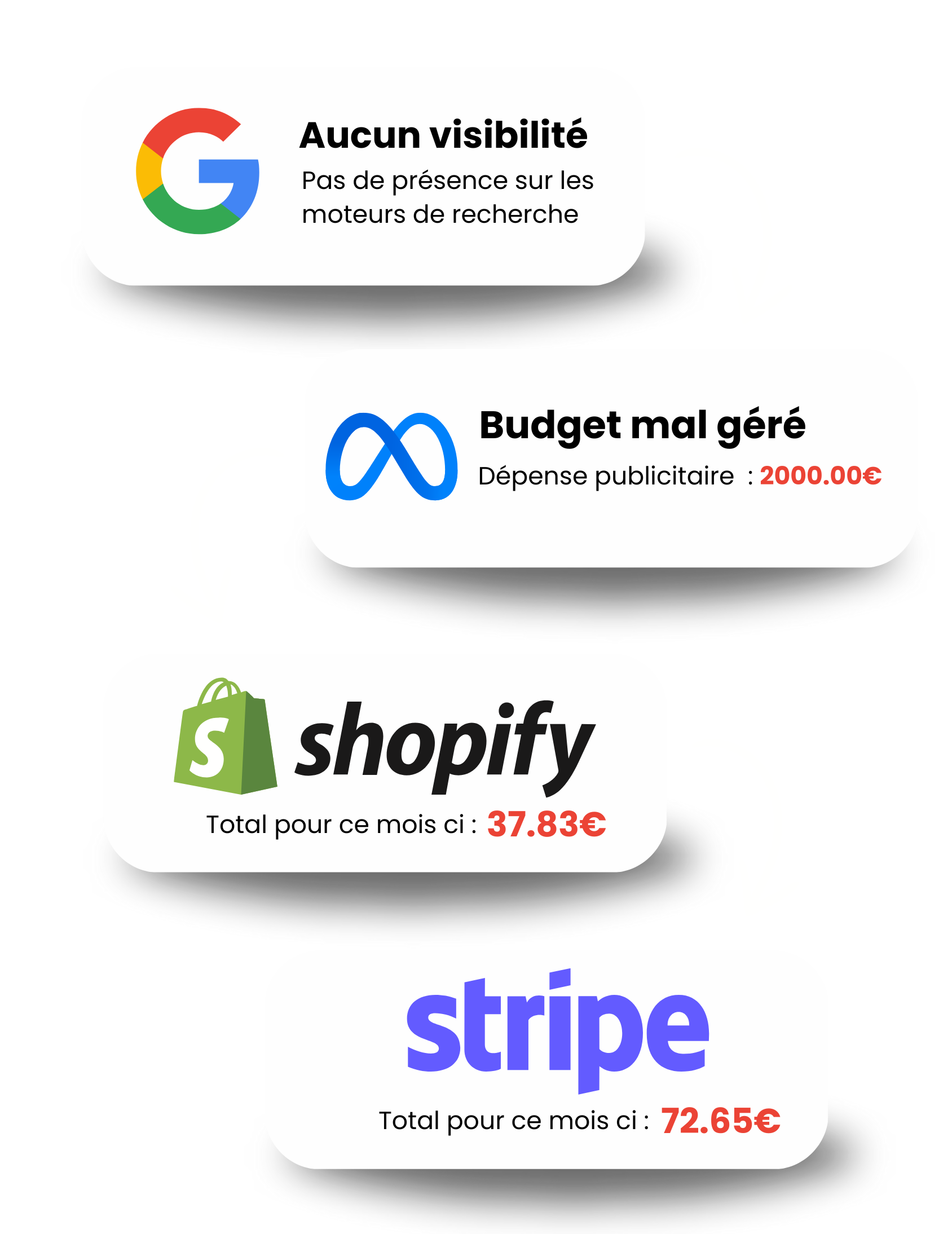 Nos prestations sont sur-mesure. Le tarif dépendra de la taille de votre boutique, de vos objectifs et des outils nécessaires pour atteindre vos résultats.